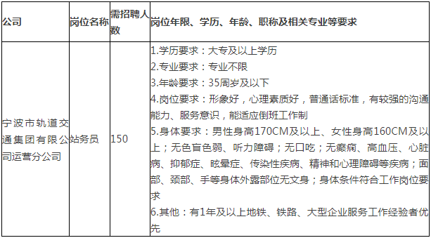 3.拟录用人员入职时间根据宁波轨道交通新线工程建设进度、工作需要具体安排。