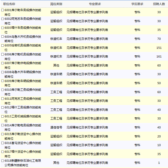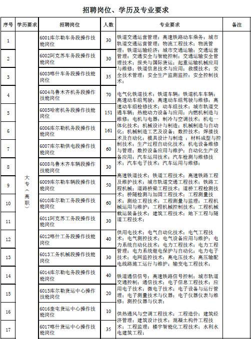 中国铁路乌鲁木齐局集团有限公司根据企业发展需要,现招聘全日制普通高校大专(高职)学历2018年应届毕业生,具体事项公告如下: