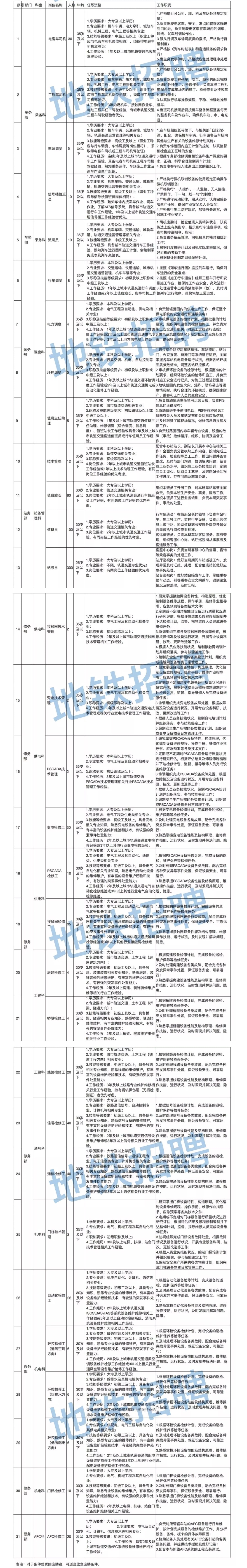 招聘的岗位及任职资格详见附件《贵阳市城市轨道交通集团有限公司运营分公司招聘岗位一览表》
