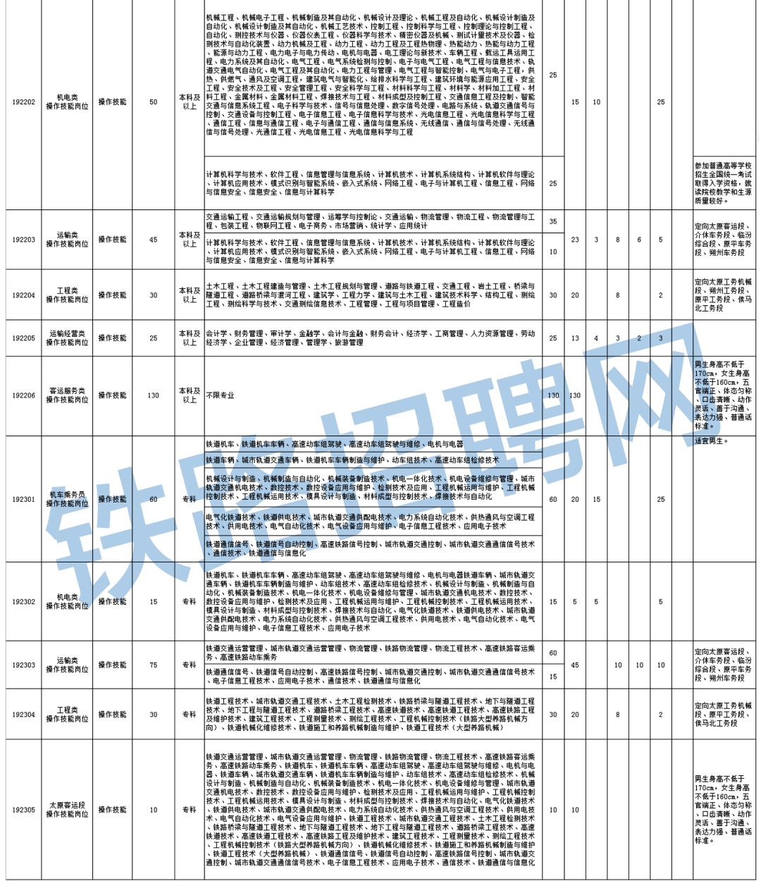 (二)专科学历毕业生。列入国家招生计划,于毕业学年取得毕业证。就读院校须在铁路行业领域内有较高知名度,开设有铁路特色专业,所学专业为铁路方向,所学主要课程为铁路主专业课程。具备派遣资格的2019年全日制普通高等院校应届毕业生。