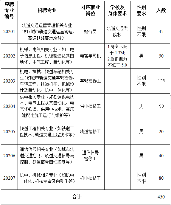 1.2020届全日制大专及全日制本科毕业生,轨道交通类院校优先;