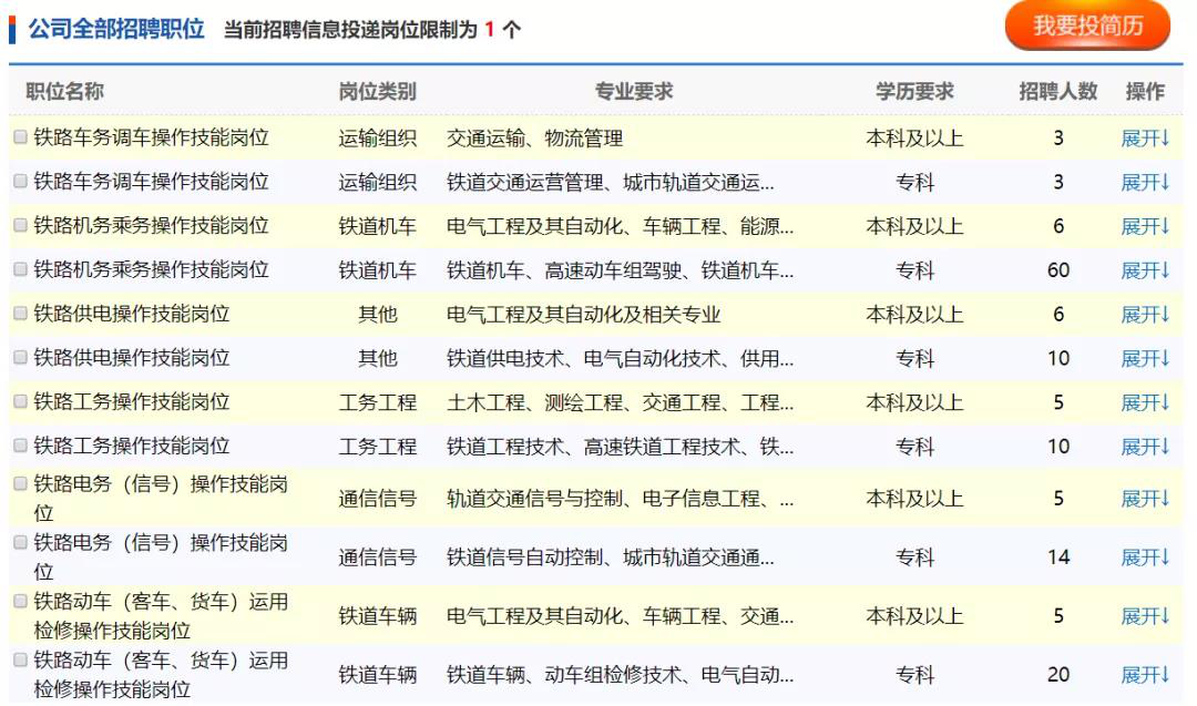 本次招聘岗位均为铁路运输生产一线操作技能岗位,具体招聘岗位、专业要求、人数和工作单位等见附件。