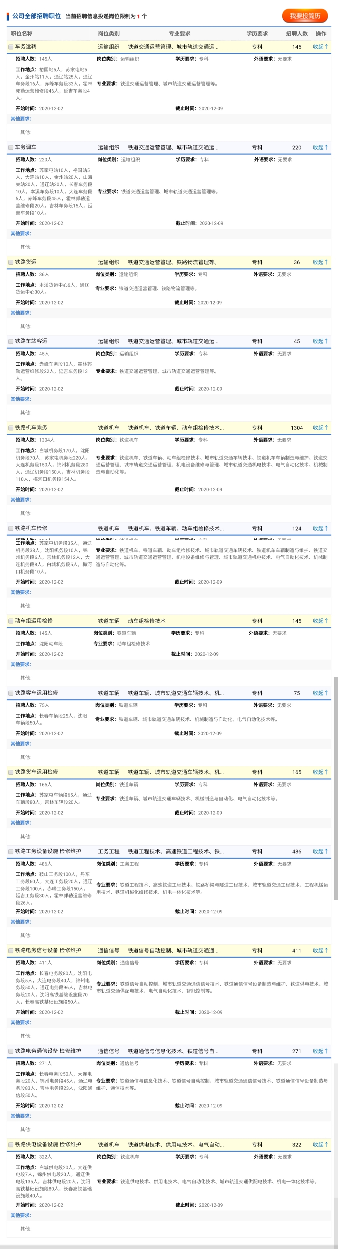 附件:人中国铁路沈阳局集团有限公司招聘2021年高校毕业生岗位信息表