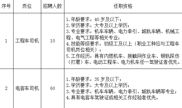 为确保贵阳轨道交通2号线顺利开通试运营,做好运营一线技能型人员储备工作,贵阳市城市轨道交通集团有限公司运营分公司亟需引进一批运营一线生产技能型工作人员。现启动2020年社会招聘工作,具体信息公布如下: