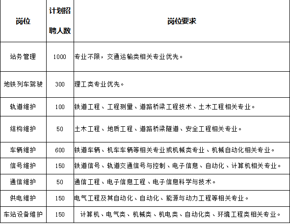 根据公司发展和运营筹备需要,杭州地铁运营分公司面向全国院校招聘以下岗位: