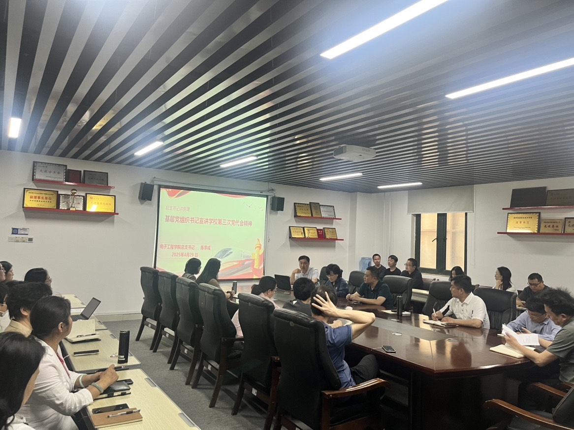 4月29日下午,为持续深化学校第三次党代会精神学习成效,推动精神实质转化为发展实践动能,电子工程学院党总支举行专题党课活动,学院党总支书记陈享成以《基层党组织书记宣讲学校第三次党代会精神》为题作专题授课,学院全体教工党员参加学习。