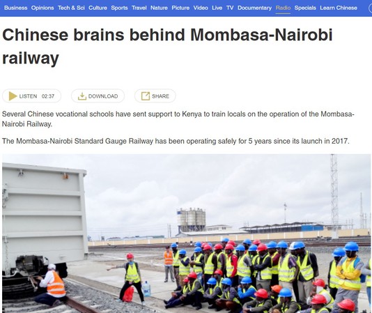 CGTN报道链接:https://radio.cgtn.com/news/recommend/Chinese-brains-behind-Mombasa-Nairobi-railway/1705