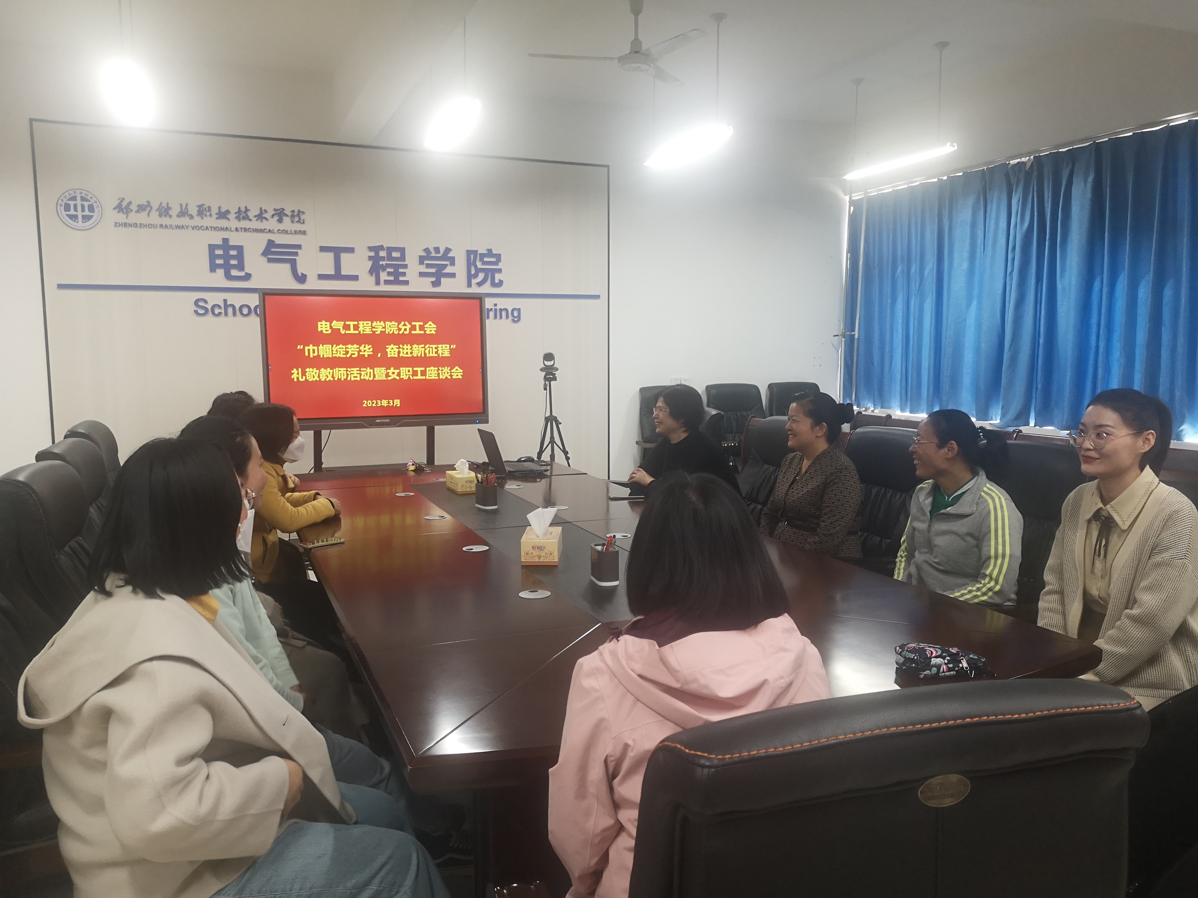 为庆祝第 113 个“三八”国际劳动妇女节,3月7日,电气工程学院开展“巾帼绽芳华,奋进新征程”礼敬教师暨女职工座谈会活动,学院17名女职工参加。