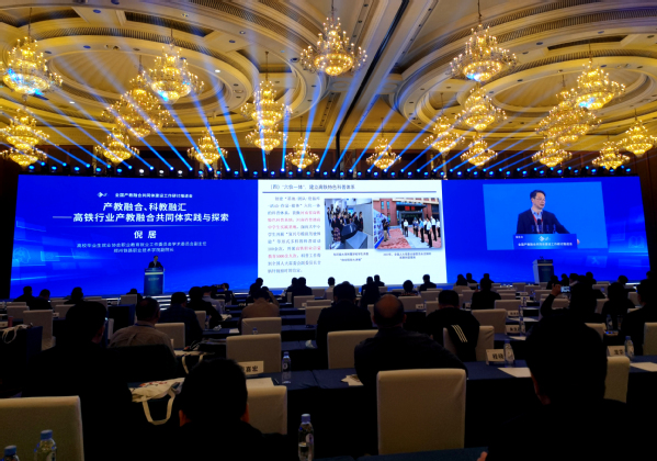 会上,高校毕业生就业协会职业教育就业工作委员会学术委员会副主任、beat365副校长倪居教授以“产教融合、科教融汇——高铁行业产教融合共同体实践与探索”为题进行了交流报告。倪居围绕“两化融合、三级对接、三证融通”打造高铁人才培养高地、“创融通转”促进高铁行业科技发展、“双向推进”铸就国内外高铁职业精英、“六位一体”建立高铁特色科普体系四方面分享了beat365在高铁行业共同体建设中的特色做法和创新成果,受到了参会领导的高度肯定。