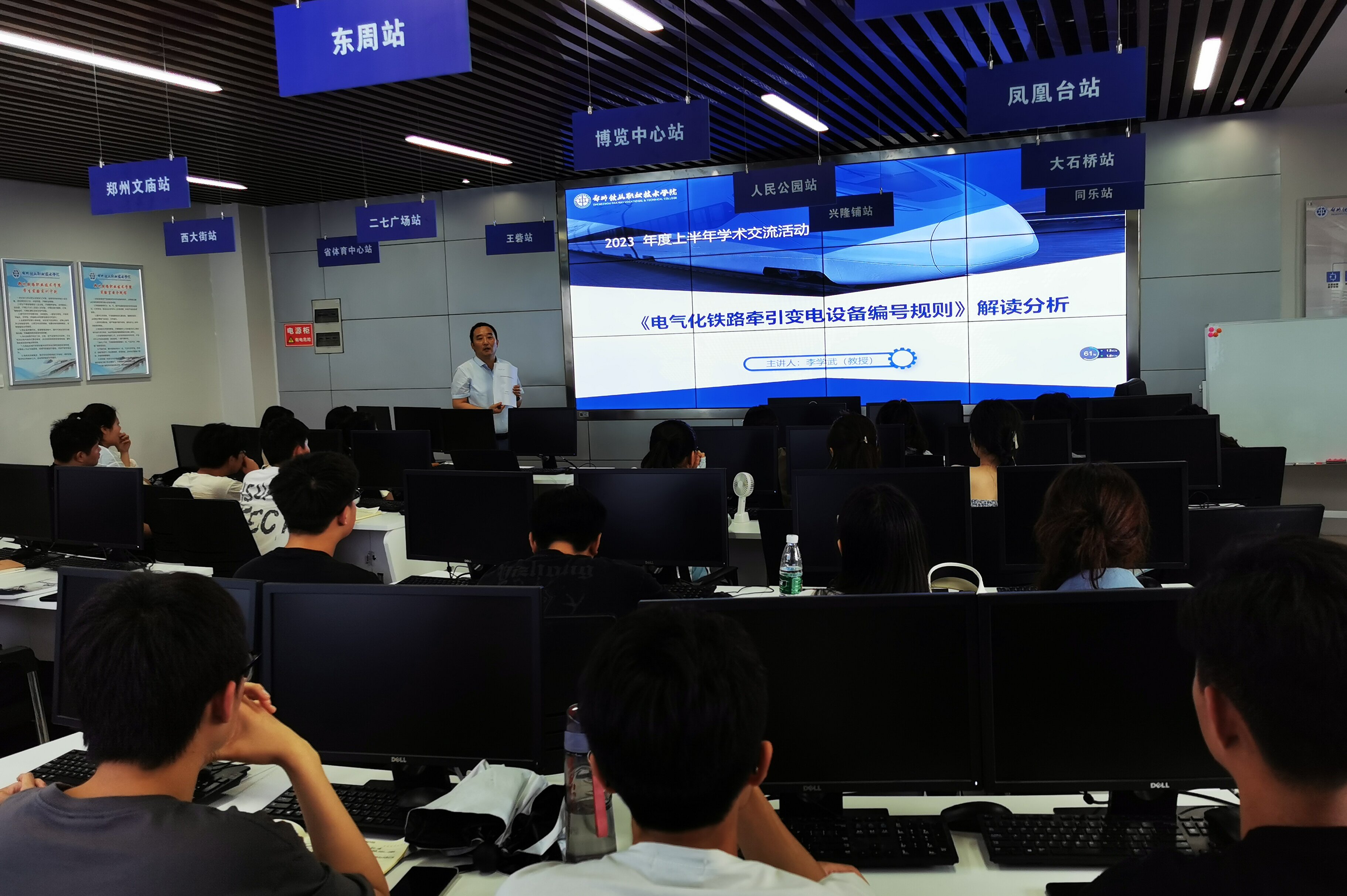2023年6月15日下午,电气工程学院组织开展学术交流活动,邀请学院党总支书记李学武教授开展题为“《电气化铁路牵引变电设备编号规则》解读分析”的专业讲座,供用电技术教研室教师和铁道供电技术专业二年级学生参与交流活动。
