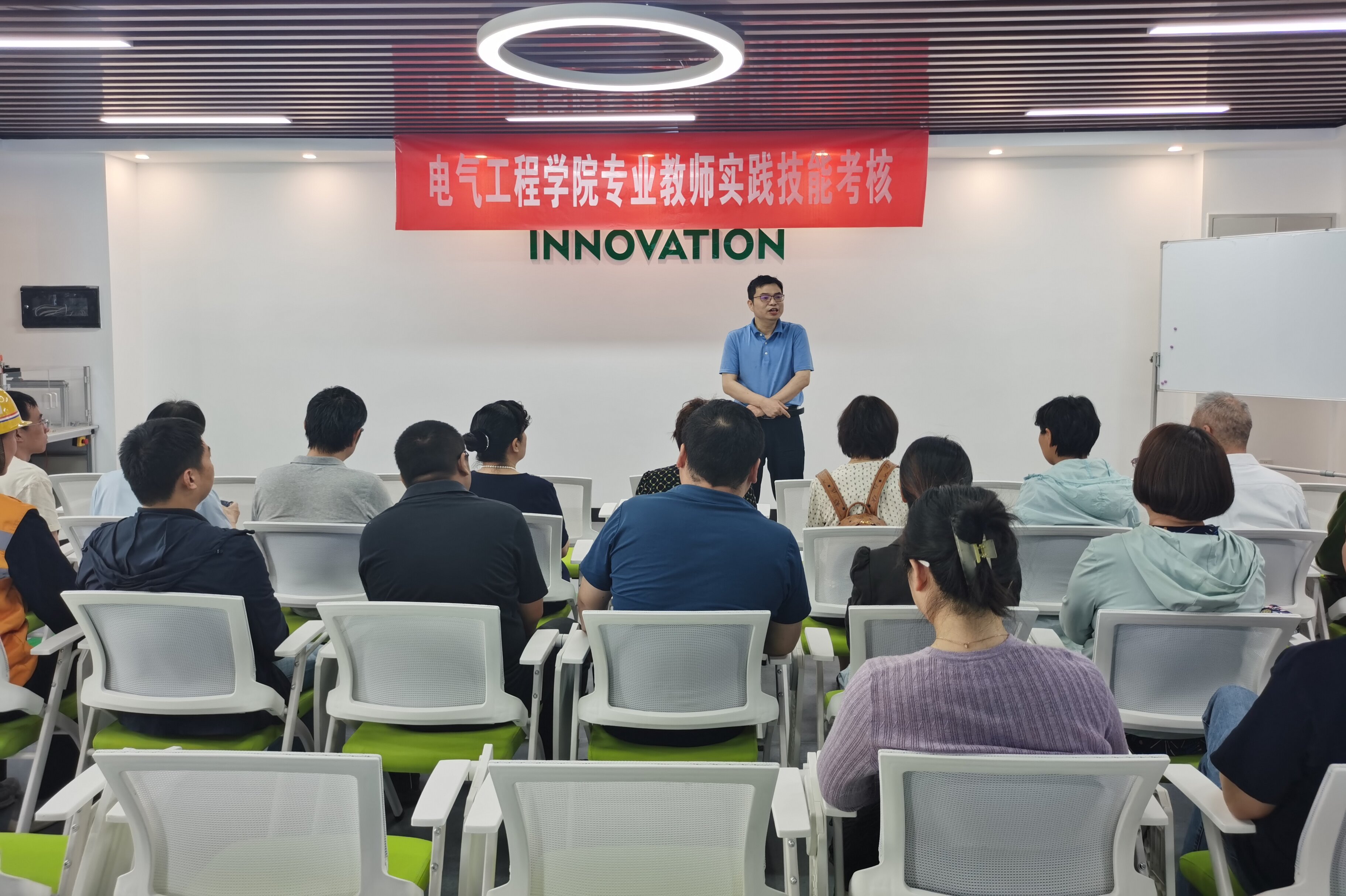 电气工程学院高度重视教师实践教学的项目开发、教学实施、教学示范能力的培养,以考核促训练、促提升,将实践技能考核作为年度教学基础建设工作的核心环节。学期伊始,即发布了涵盖专业核心技能特别是近三年新建实训室实训项目的考核范围。每位教师选定两个实训室项目参与考核,并在考核前随机抽取具体项目。考核分为实践教学项目指导书编写和实验操作两部分,由资深教授、企业专家和学院领导组成的考评小组进行评审。中青年教师积极提升技能,通过资深教师指导、企业专家到校、团队研讨及厂商培训等多元化形式进行准备。