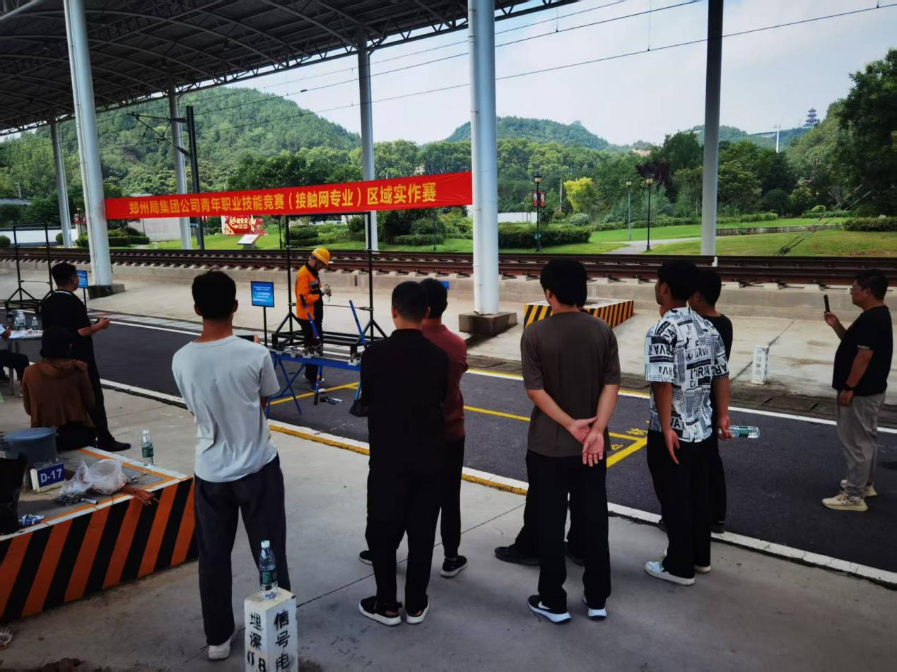 为深化党建与业务融合,强化校企党建联建共建,7月24日,电气工程学院组织党员师生团队由教工第二党支部党员教师刘光辉带队赴中国铁路郑州局集团公司职工技能实训基地现场,观摩郑州铁路局共青团委组织的青年职业技能竞赛(接触网专业)区域实作赛。