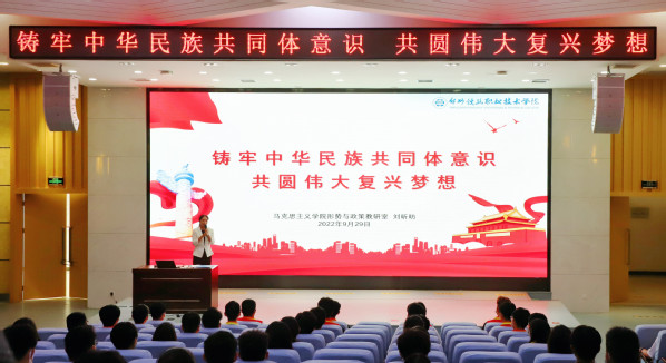 喜迎二十大,同心跟党走。9月29日,党委统战部和马克思主义学院在7号楼第二报告厅联合举办“铸牢中华民族共同体意识”主题公开课,宣讲民族团结进步,弘扬中华民族共同体意识,交流思政课教学成果,各党总支(直属党支部)统战委员、马克思主义学院教师、“青年马克思主义者培养工程”学员、习近平新时代中国特色社会主义思想学习社社员和优秀学生干部代表参会聆听。