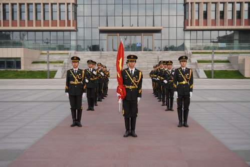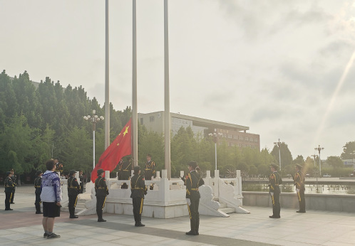 早上七点十分,迎着朝阳,伴着晨曦,同学们整齐列队,升旗仪式正式开始。国旗护卫队迈着铿锵有力的步伐护卫五星红旗入场,伴随着雄壮嘹亮的《义勇军进行曲》,五星红旗冉冉升起,迎风飘扬。全体师生庄严肃穆,向国旗行注目礼,齐声高唱国歌,歌声响彻铁院校区。