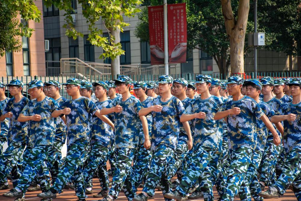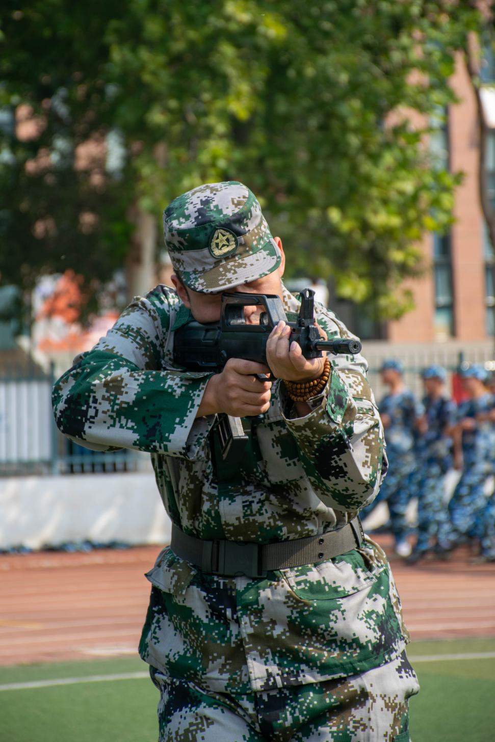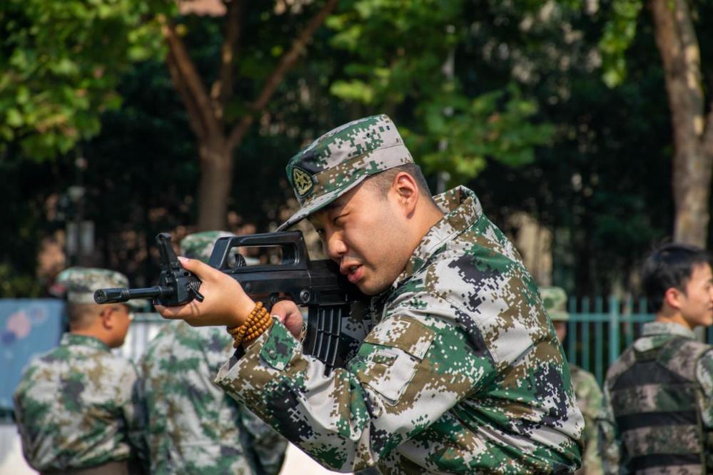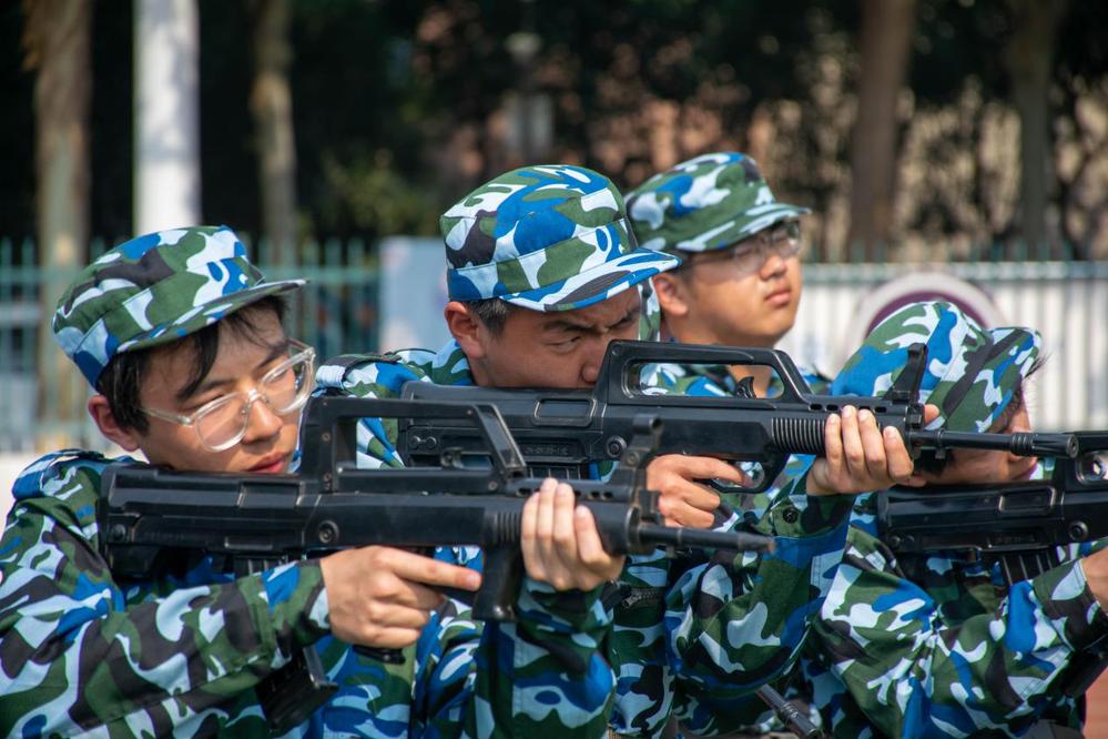 同学们在教官指引下