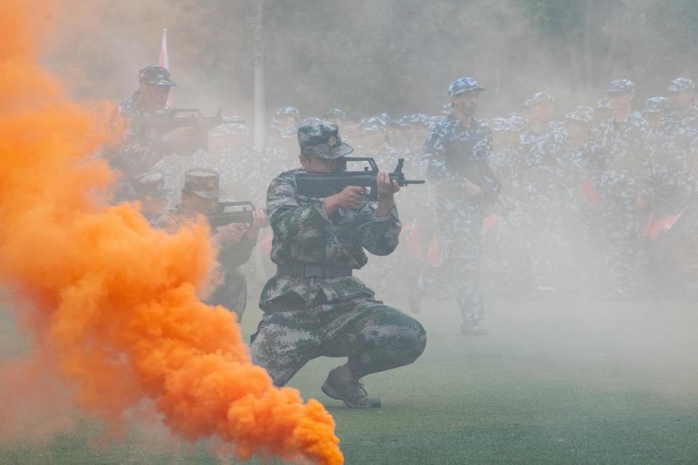 同学们在战术表演中