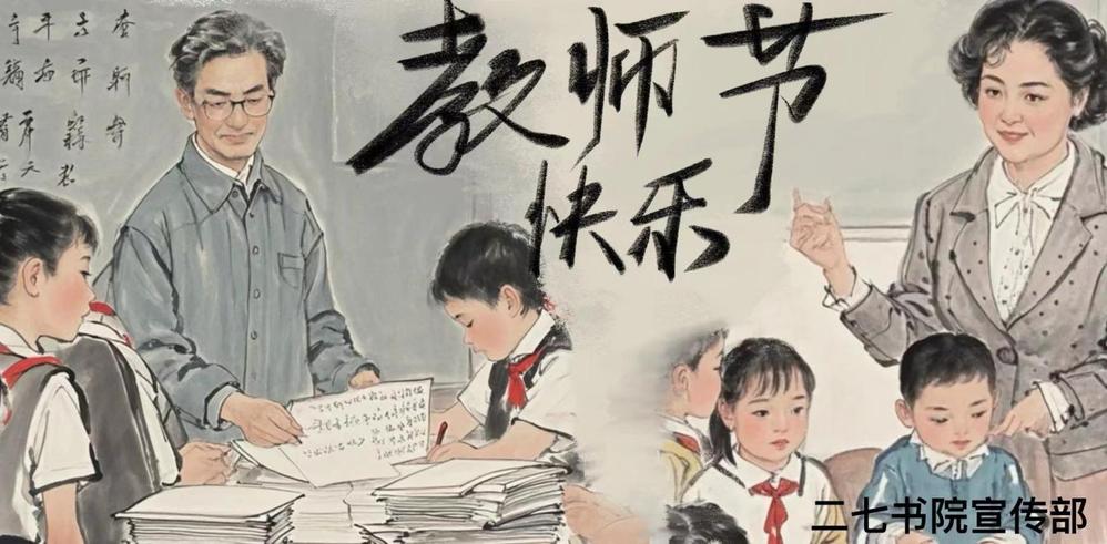 为庆祝第四十个教师节的来临,二七书院宣传部于九月初绘制“教师节快乐”主题展板以形象生动的画面展现出老师对学生的谆谆教诲,表达学生对老师的敬意和感激之情。此次展板绘制活动不仅给教师们带来了节日的温馨与感动,也增强了全体师生的凝聚力和对学校的归属感。