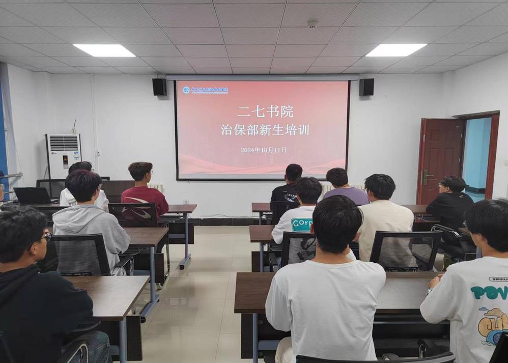 为进一步夯实书院安全稳定,提升学生干部业务能力,确保书院治保部工作开展,10月11日,二七书院治保部在二七大讲堂开展新成员工作培训。