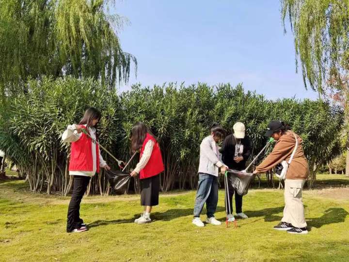 活动开始前志愿者们进行环保理念宣传,共同学习习近平总书记生态文明思想,深入体会绿色生活理念。活动中志愿者们进行分组,明确分工,在各自负责的区域内开展打扫活动。志愿者们在打扫的过程中一丝不苟,将象湖边缘的落叶与外围部分的白色垃圾与烟头清扫干净,成功完成各自区域的清扫任务。