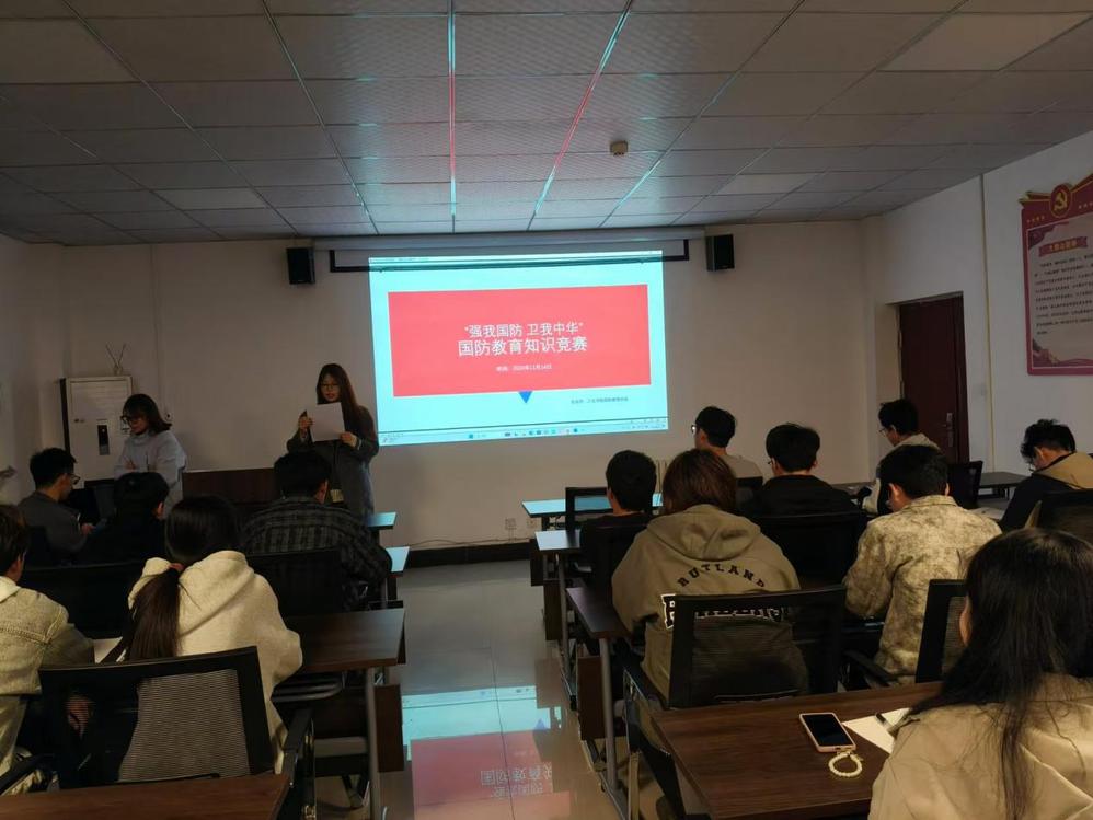 11月14日,为不断提升学生国防安全意识和素质,一场以“强我国防,卫我中华” 为主题的国防安全知识竞答活动在二七大讲堂热烈开展。