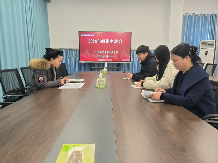 根据书院党总支统一部署,2月25日,二七书院艺术学生党支部在党团活动室召开2024年度组织生活会。党支部书记孙姣姣主持会议,全体支部成员参加。