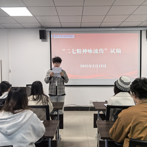 2025年3月18日,在这个春意盎然、生机勃勃的日子里,九名同学参加了二七精神宣讲试稿活动。此次活动旨在传承和弘扬二七精神,激发青年学生的爱国热情,增强历史使命感和责任感。