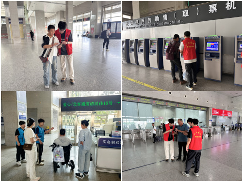 同学们特别珍惜这次实习机会,以饱满的精神状态投入实习工作岗位中去,他们身着志愿服,在郑州站的候车大厅、检票口、爱心通道等开展咨询指引、票务协助、候车引导、秩序维护等相关服务。同学们表示,第一次接触到铁路实际工作,虽然日均两万步的实习工作充满挑战,但看到旅客因我们的服务露出笑容,真切体会到了职业价值。