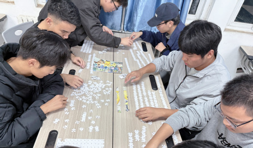 最后进行的“趣味拼图”活动,充分体现了团队协作的力量。十人一组,需在有限时间内共同完成一幅拼图。同学们全神贯注、各展所长,在有序的分工与紧密的配合中,最终将零散的碎片拼合成完整的图画,共同收获了成功的喜悦与集体的成就感。