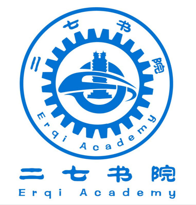二七书院四个字为中国书法隶书字体,体现从古至今蓬勃发展的书院文化传承; 标识图案内圆为蓝色环形铁路车轨,环绕动车组列车设计,响应国家“交通强国,铁路先行战略,体现二七书院为国家交通事业和社会主义现代化建设培育技术技能型人才的特色性质。动车组标志和火车轮表明二七书院是轨道特色明显的专业书院。标识中二七纪念塔代表书院建于中国最大铁路中心枢纽城市郑州,并且书院是以新时代二七精神为基础,开展特色红色教育,传承、发扬新时代二七精神育人模式的特色书院。下方英文Er qi Academy为二七书院英文注释,表示书院紧抓时代机遇,主动与国际接轨,创新发展,建设新时代特色书院。