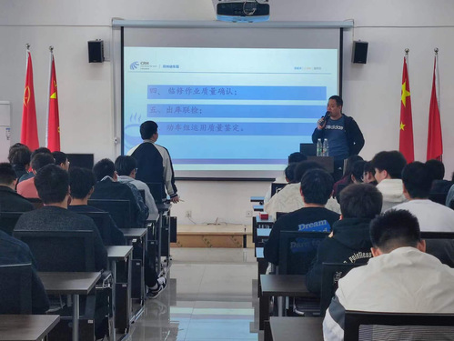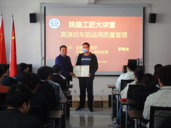 罗烽光以《高速动车组运用质量管理》为主题,向与会师生讲解了动车基本知识、作业标准、检修质量卡控要求,提高动车组检修质量对动车运用、安全运行的影响等内容;分享了工作中的体会,鼓励同学们要学好专业知识,提高实践动手能力,增强自身本领,践行工匠精神,争做新时代的大国工匠。随后,罗烽光与同学们进行互动交流,结合自身工作学习体会对同学们的疑惑进行解答。