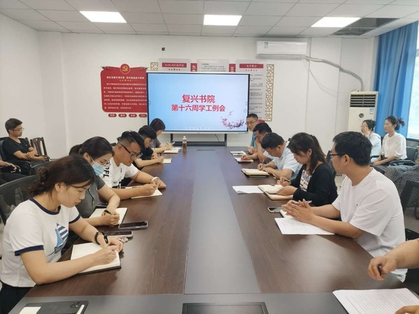6月18日,复兴书院在C111会议室召开本学期第十四周学生工作例会,复兴书院全体学工人员和兼职班主任参加会议。会议由党总支副书记赵亮主持。