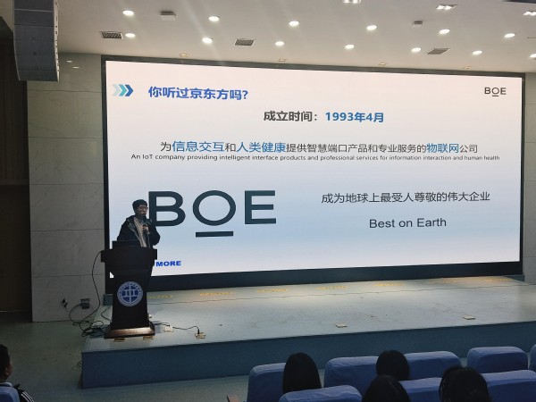 此次宣讲会邀请到了京东方科技集团、珠海冠宇电池股份有限公司、浙江大华智联有限公司等企业。京东方科技集团首先讲述了企业的发展历程、业务范围、职业发展、优厚待遇等;珠海冠宇电池股份有限公司介绍了企业文化、未来前景、人才培养等;浙江大华智联有限公司详细介绍了业务范围、岗位分类、实习就业安排等,并就同学们的实习和就业提出了中肯的建议。