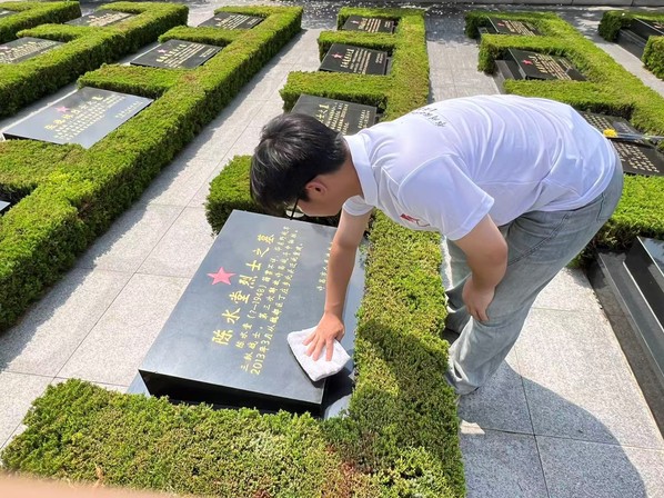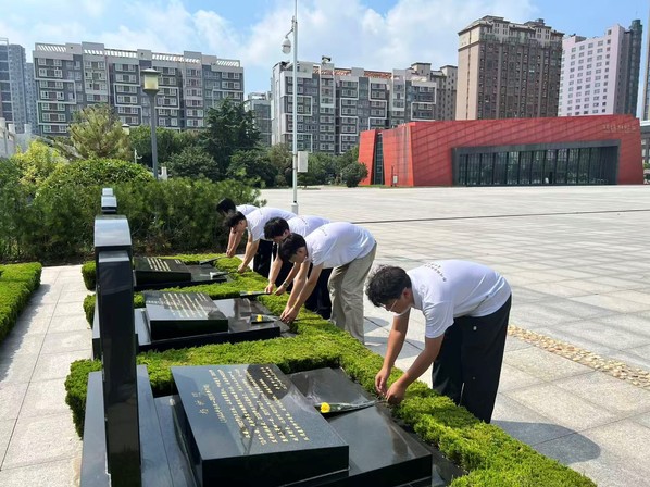 在庄严肃穆的许昌烈士陵园,实践团队整齐列队,面向革命烈士纪念碑肃立默哀、敬献鲜花,表达对英烈的深切缅怀和崇高敬意。同学们缓缓走过一片片墓碑区,阅读碑文、了解事迹,不少同学动容记录,深切体会到和平来之不易。在这片安息着无数忠魂的土地上,大家更加坚定了继承先烈遗志、奋发图强报效祖国的决心。