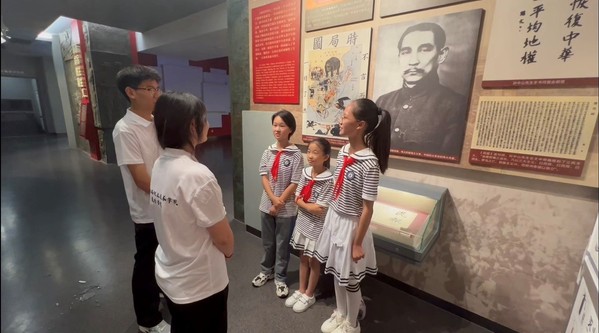 在参观过程中,实践团队的成员会随机提问小学生们一些关于革命历史的问题,并向回答正确的学生赠送爱国主义主题徽章,这种方式不仅增强了孩子们对所学知识的记忆,还激发了他们的学习兴趣与热情,进一步强化了他们的爱国意识。