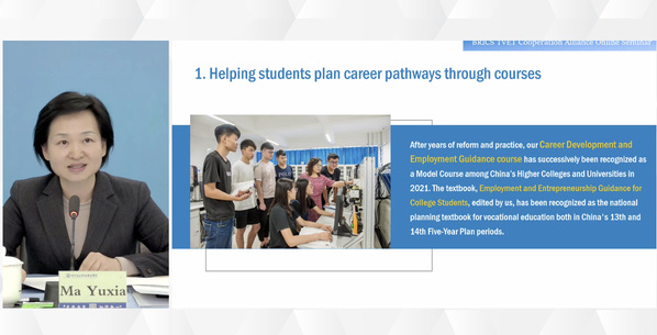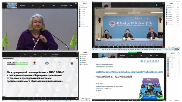 11月29日,由俄罗斯联邦职业教育发展与培训学院主办的金砖国家职业教育联盟研讨会在线举行,来自联盟成员单位的100多位中外代表共同参会。此次研讨会的主题为“职业院校学生的职业生涯路径”。校长马玉霞受邀出席会议,并发表《构建生涯规划体系,助力学生职业发展》(Establishing Career Planning Systems, Supporting Students’ Vocational Development)专题演讲。