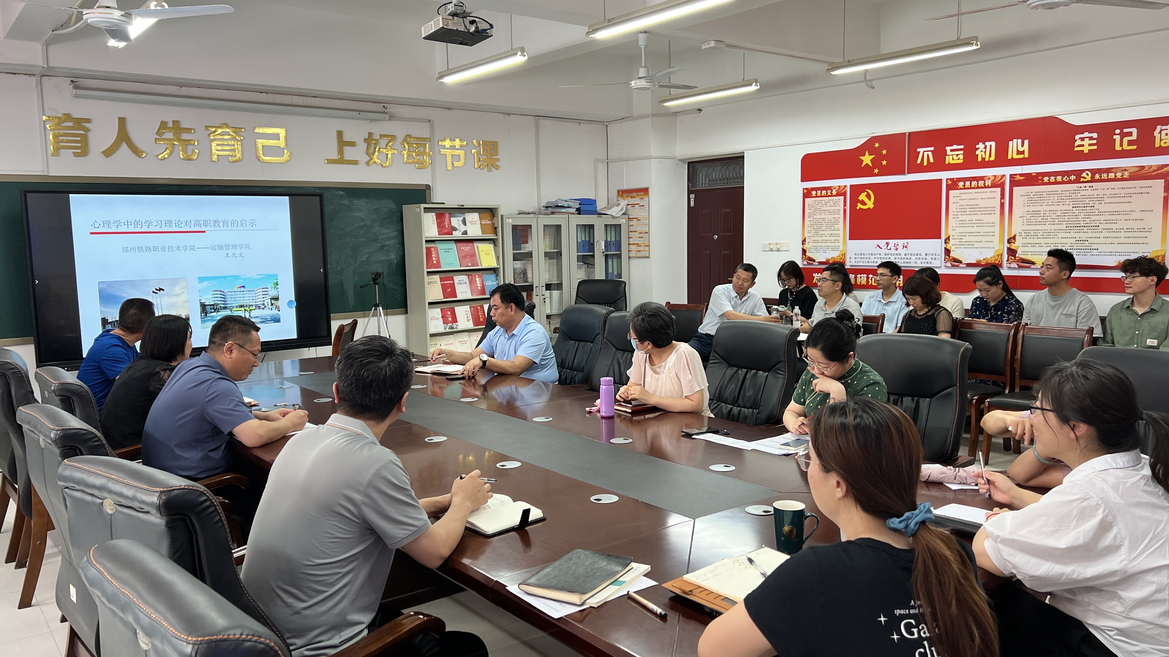 6月25日下午,运输管理学院在会议室举办本学期校内专家学术讲座。讲座由铁道交通运营管理教研室副教授王大文老师主讲,题目为《心理学中的学习理论对高职教育的启示》。运输管理学院全体教职工到场参加。