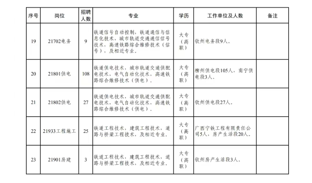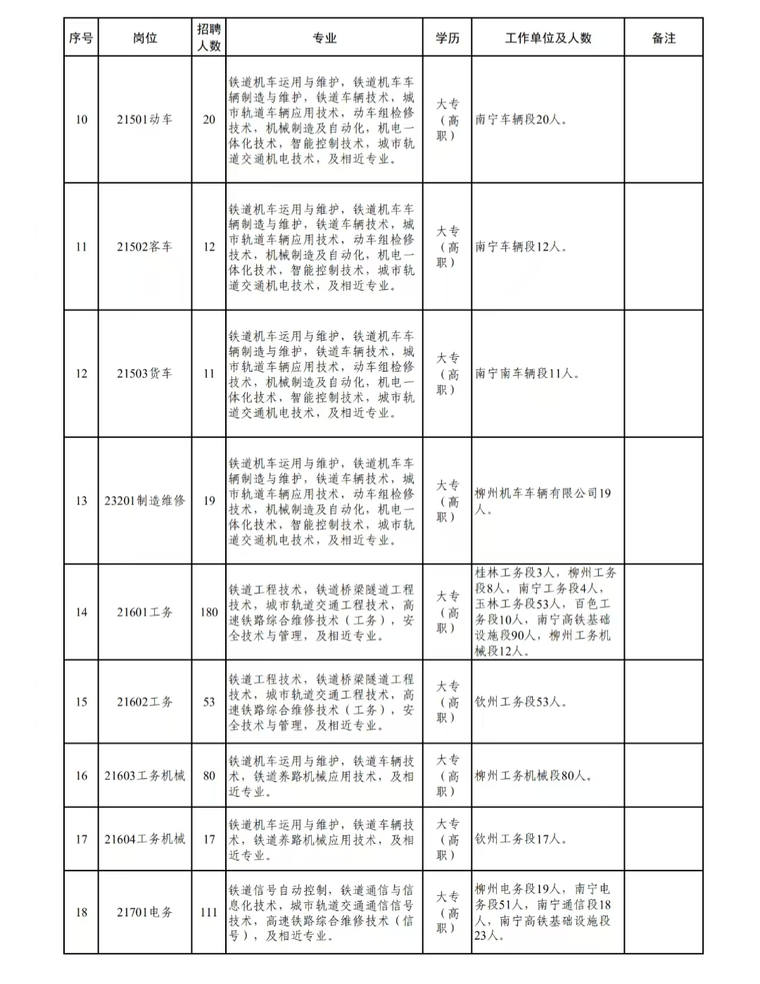 附件:中国铁路南宁局集团有限公司招聘2026年高校毕业生公告二岗位列表