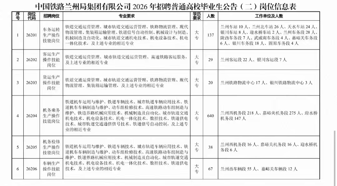 6.中国铁路兰州局集团有限公司人事部保留对招聘公告的最终解释权。