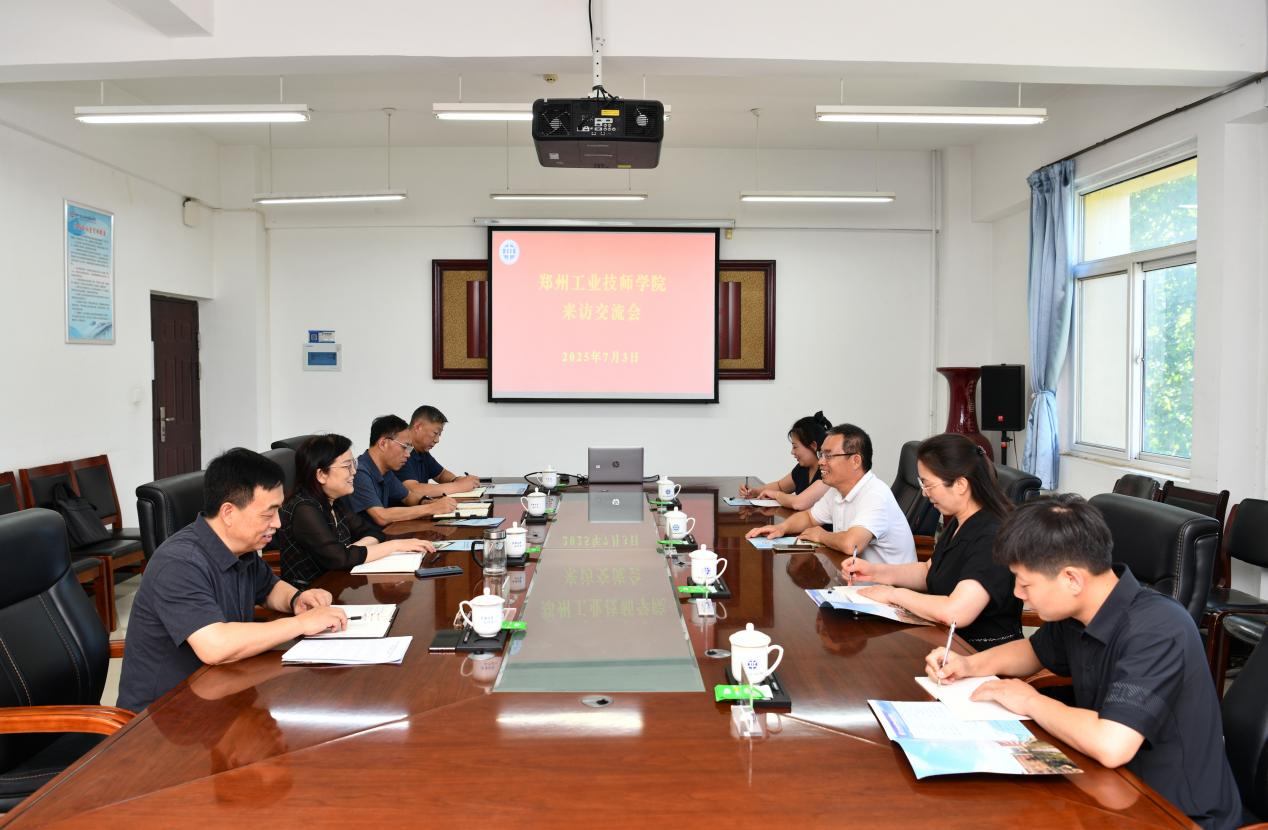 7月3日,郑州工业技师学院工会主席王宽俊一行来校交流,副校长胡殿宇出席座谈会并致欢迎辞,郑州工业技师学院人事劳资处、财务处、规划发展处及beat365党委组织部、国有资产管理处、发展规划处相关负责同志参加座谈交流。