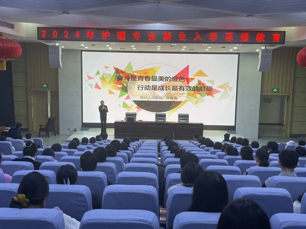 11月13日下午,来自郑州人民医院,有着“最美护士”称号的邵青青应邀到校为2024级护理专业新生做入学思想教育。