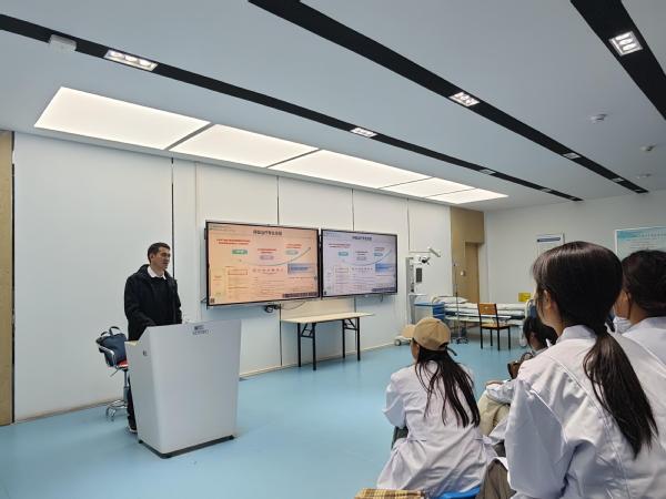 讲座伊始,尚明升以学长的身份,亲切分享了自己的求学经历和职业成长轨迹。他娓娓道来如何与呼吸治疗结缘,并通过不懈努力从一名在校生成长为临床骨干的历程,迅速拉近了与在场学生的距离。