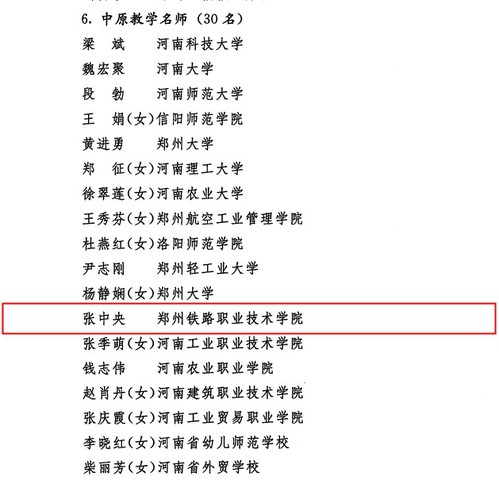 2020年12月9日,河南省人力资源和社会保障厅下发《关于印发2020年度“中原英才计划”(育才系列)入选人员名单的通知》(豫组通〔2020〕48号)。beat365张中央教授获批中原教学名师。