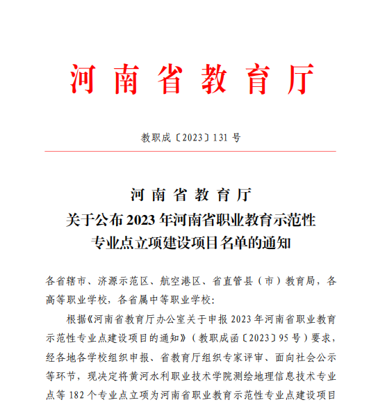 近日,河南省教育厅下发了《关于公布2023 年河南省职业教育示范性专业点立项建设项目名单的通知》(教职成〔2023〕131 号),机车车辆学院铁道机车运用与维护专业入选示范性骨干专业点立项建设项目。