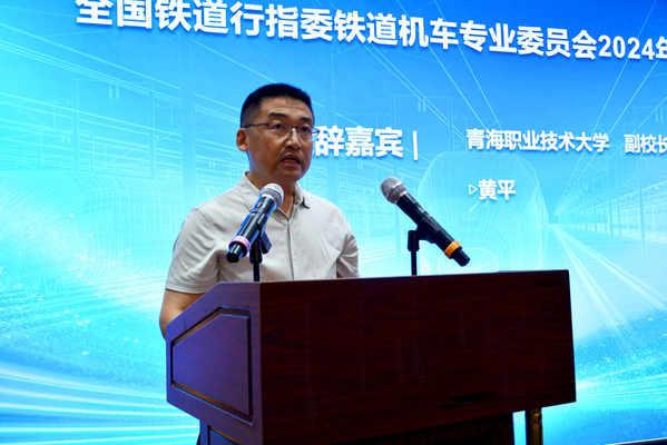 青海职业技术大学副校长黄平、郑州畅想高科股份有限公司董事长冯献华分别致辞。铁道机车专业委员会副主任委员、西安铁路职业技术学院牵引动力学院院长李益民作2023年度铁道机车专业委员会工作总结。