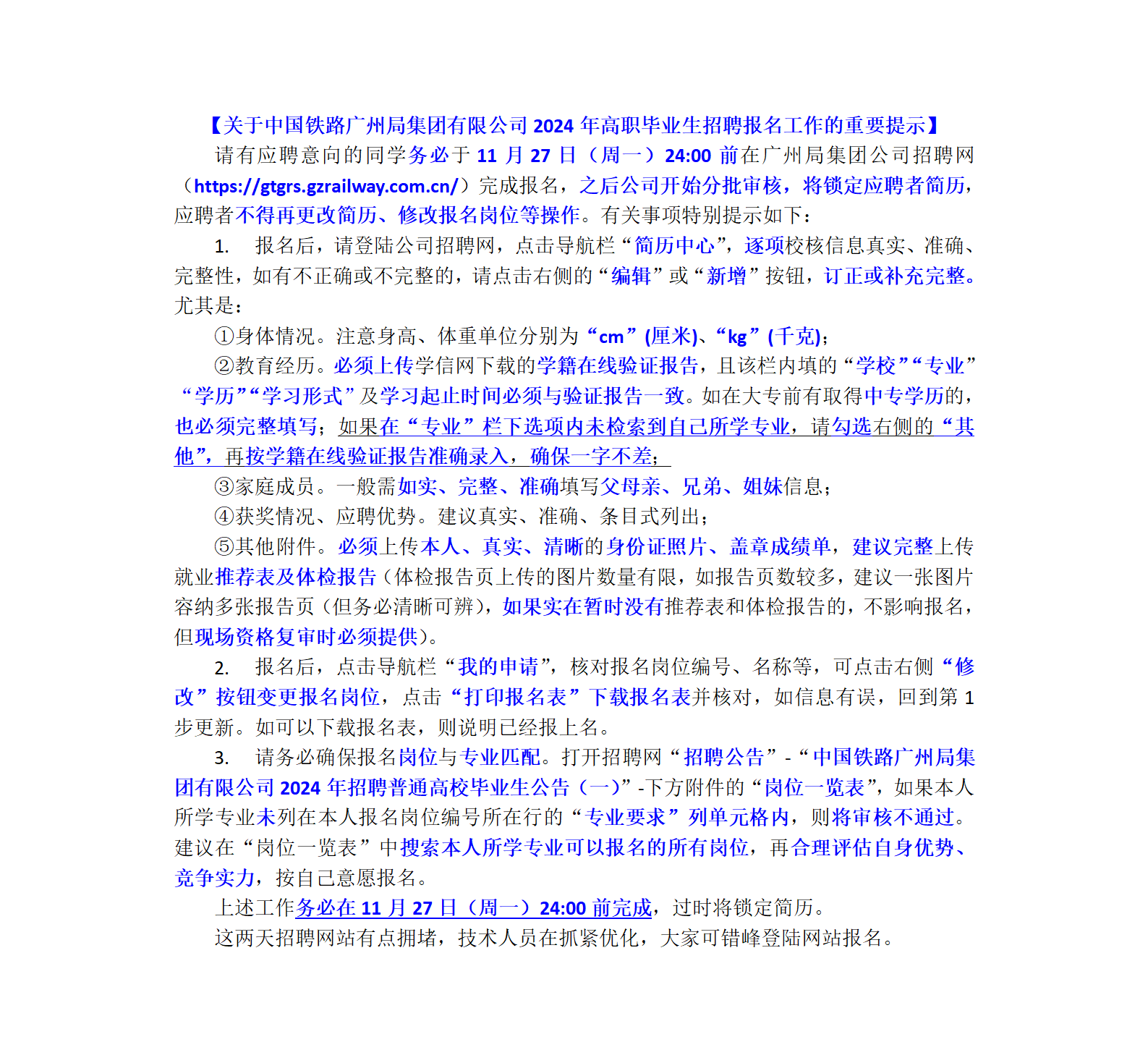 关于中国铁路广州局2024年高校毕业生招聘的通知