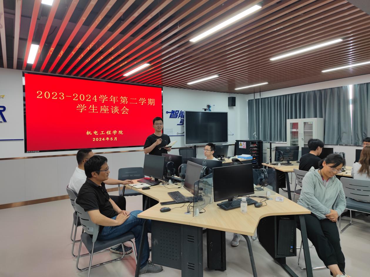 为深入了解学生的学习生活思想状况,听取学生对学院教育教学的意见与建议,5月21日下午,机电工程学院组织开展了2023—2024学年第二学期期中教学检查学生座谈会。学院副书记吕蒙,办公室主任屈辰鸣,各专业负责人,以及22级、23级部分学生代表参会。会上,学生代表积极建言献策,就当前课程设置、学风建设、教学设施、实习就业等方面提出了自己的看法和建议。