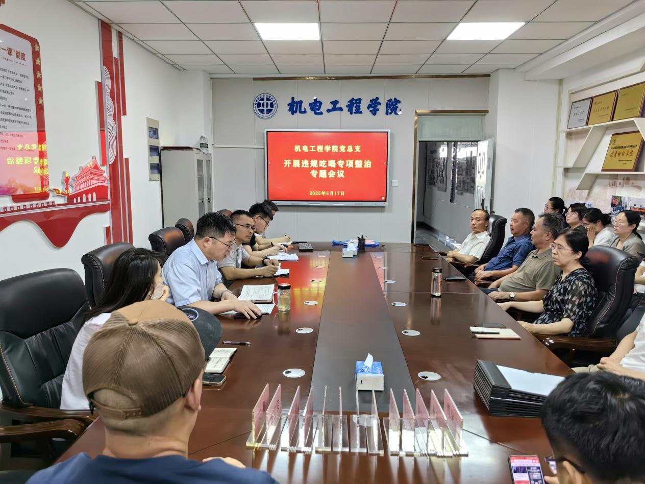 为深入贯彻中央八项规定精神学习教育,扎实推进学院党风廉政建设和反腐败工作,对学院专项整治工作进行再部署、再强调,6月17日,机电工程学院党总支召开违规吃喝专项整治专题会议。会议由学院党总支副书记、院长魏保立主持,学院领导班子成员、全体党员教师及部分非党员教师代表参会。