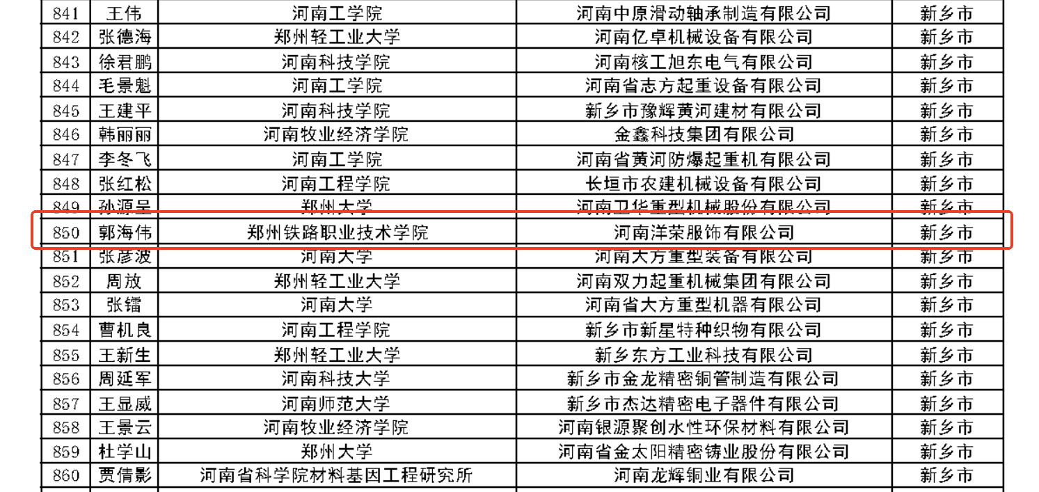 2025年12月29日,中共河南省委组织部、河南省科学技术厅、河南省教育厅联合下发《关于公布2024年度河南省“科技副总”名单的通知》,我院郭海伟博士成功入选2025年度河南省“科技副总”。