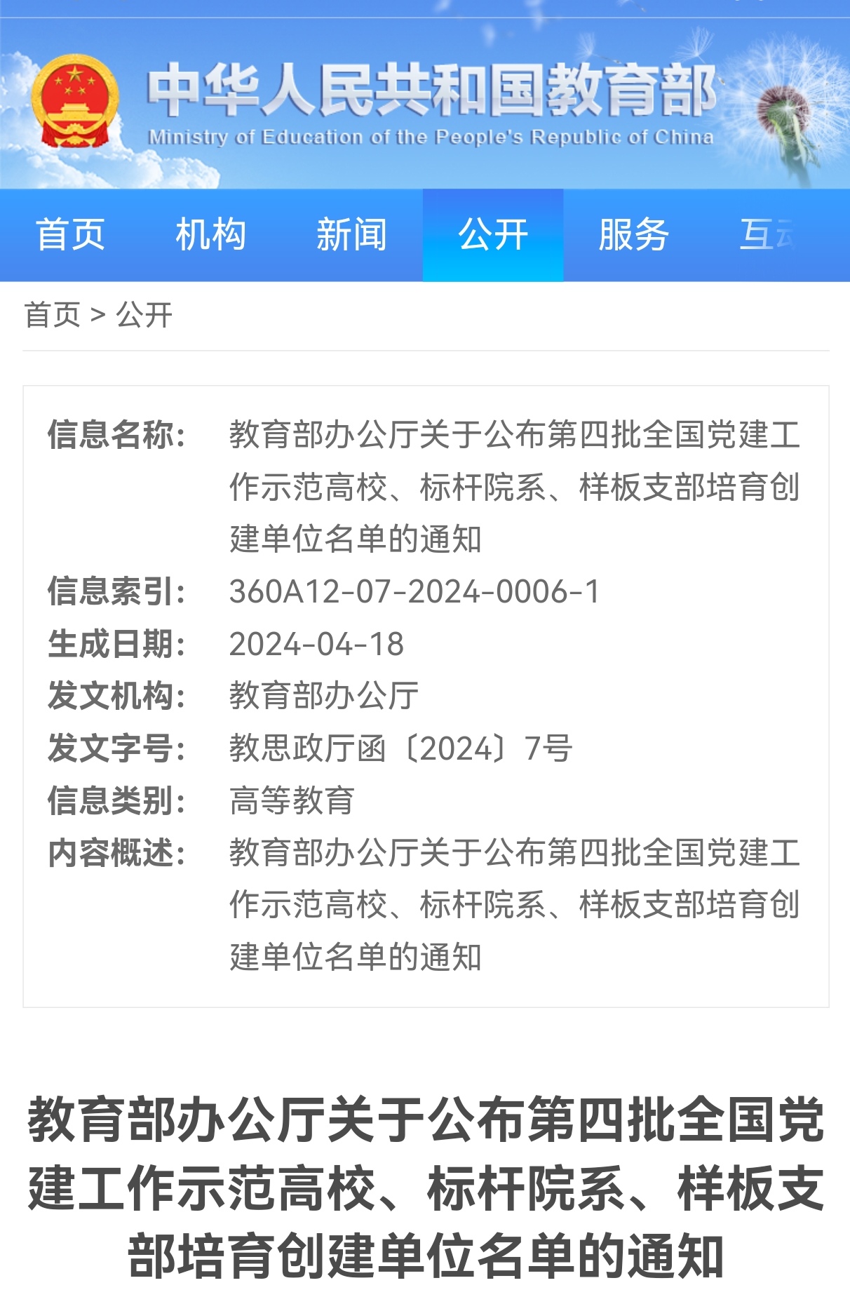4月18日,教育部公布了第四批新时代高校党建示范创建和质量创优工作遴选结果,机关党总支教务处党支部入选“全国党建工作样板支部”培育创建单位。