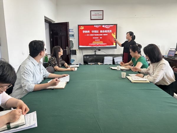 为认真落实学校和机关党总支党纪学习教育要求,扎实推进支部党纪学习教育,5月14日,审计处党支部开展了“支部书记讲党课”活动,支部书记韩爽以《学条例 守党纪做合格党员》为题向全体党员讲授党纪学习教育专题党课,机关党总支副书记李苏怡、组织员李盈盈参会指导。